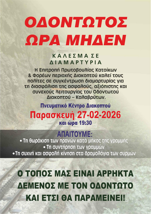Ο κ. Γιάννης Καρβούνης μέλος της επιτροπής Πρωτοβουλία Κατοίκων και Φορέων περιοχής Διακοπτού τόνισε μεταξύ άλλων:τα προβλήματα στον «ΟΔΟΝΤΩΤΟ» άρχισαν από την πώλησή του α)στην Εταιρεία Hellenic Train η οποία ευθύνεται για την κακή συντήρηση των υποδομών, β) το ελλιπές προσωπικό στο μηχανοστάσιο, γ) στην ευθύνη της Περιφέρειας Δ.Ε. για τη μη θωράκιση των πρανών κατά μήκος της γραμμής μετά από την πυρκαγια του 2023 για την ασφαλή και καλή λειτουργία του «ΟΔΟΝΤΩΤΟΥ». Το θέμα είναι πόσο ανταποκρίνονται στις ευθύνες οι τρεις παράγοντες(α,β,γ);