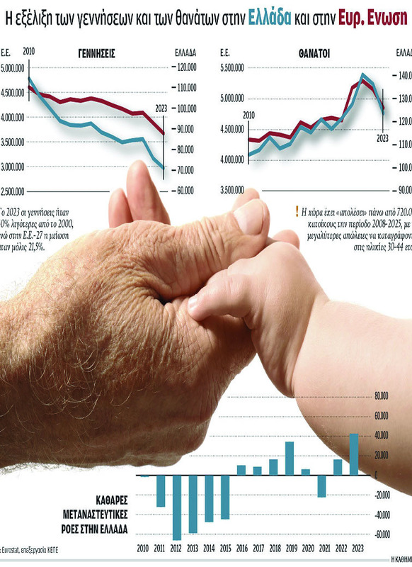 Στη φετινή ΔΕΘ ο πρωθυπουργός Μητσοτάκης, στις καθιερωμένες εξαγγελίες οικονομικού, κυρίως, χαρακτήρα εστίασε στο δημογραφικό ζήτημα που υπάρχει για το ελληνικό κράτος. Μια προσεκτική ανάγνωση των προτάσεών του φανερώνει, ότι το ενδιαφέρον του εξαντλείται σε θέματα φορολογίας και ελάφρυνσης διαφόρων πληθυσμιακών ομάδων. Βαφτίστηκαν δημογραφικά μέτρα εκείνα που είναι πρώτα και κύρια δημοσιονομικά και επίσης, έχουν βραχεία ή μεσαία διάρκεια, εν αντιθέσει με το μακροπρόθεσμο χαρακτήρα που διέπουν αντίστοιχα μέτρα. Το δημογραφικό αποτελεί, τα τελευταία 20 χρόνια, για το ελληνικό Κράτος μια σχετικά δύσκολη εξίσωση. Και την κάνει δυσκολότερη η δημαγωγία των κυβερνώντων, η εθνικιστική προσέγγιση, η προσκόλληση σε έννοιες όπως «γάμος-γέννηση-οικογένεια», αλλά και η έντονη φτωχοποίηση μεγαλύτερων κομματιών πληθυσμού, η μετανάστευση από τον ελλαδικό χώρο προς τρίτες χώρες τα τελευταία 15 χρόνια, η πλήρης αποσάθρωση «κοινωνικών δομών». Με απλά λόγια, δημογραφικό ζήτημα προκύπτει διότι υπάρχουν σύνορα, κράτη, έθνη που το καθένα λειτουργεί ανταγωνιστικά ή και περιοριστικά προς το άλλο. Είναι απόρροια της εξουσίας και της ισχύος που καθορίζει τις ανθρώπινες αποφάσεις και ζωές. Αποτελεί πρόβλημα λόγω της εδραίωσης του πολιτικο-οικονομικού κρατικού συστήματος διεθνώς, όπου η κάθε έννοια λαμβάνει οικονομική διάσταση.