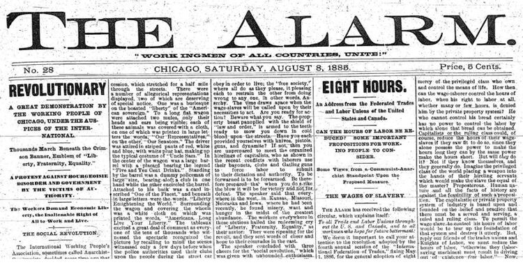 Η Πρωτομαγιά τιμά τους αναρχικούς της εξέγερσης της πλατείας του Χέιμαρκετ του Σικάγο που εκτελέστηκαν δι’ απαγχονισμού από την Πολιτεία του Ιλινόις το 1887, επειδή συμμετείχαν στον αγώνα για την οκτάωρη εργασία.