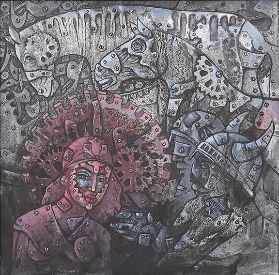 Κοινωνίες που πιέζονται προς την πληβειοποίηση και κοινωνίες που συνθλίβονται προς την προσφυγιά και την εξαθλίωση. Όποιος δεν ακολουθεί το δάχτυλο του δήμιου, όποιος δεν υποτάσσεται, είναι ο επόμενος στόχος. Ο τεχνο-ολοκληρωτισμός, στον τυφλοδότη φωταδισμό του, εξοντώνει μαζικά αμάχους, κονιορτοποιεί κοινωνίες, μέσα από αλγόριθμους. Κι ο μετα-άνθρωπος, αποτασσόμενος κάθε τρυφερό συναίσθημα, είναι καβάλα στο πτώμα του και καλπάζει, φλερτάροντας ανοιχτά με τον πυρηνικό όλεθρο. Κι αυτήν την φορά, όσο κι αν κάνουμε πως δεν το βλέπουμε, δεν μοιάζει με ακριβές κι οργανωμένο σχέδιο, αλλά με άτσαλη ζαριά.
