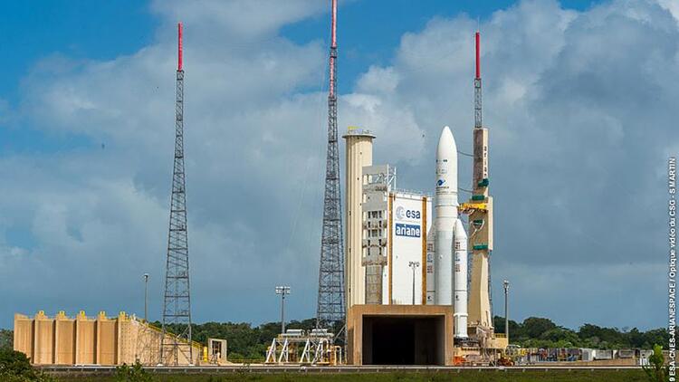 Τη Δευτέρα, είχε ολοκληρωθεί η μετακίνηση του πυραύλου Arianne 5 στο Κουρού που μετέφερε τους δύο δορυφόρους - τον Hellas Sat 4 και ένα Ινδικό δορυφόρο, από την βάση τελικής συναρμολόγησης στην βάση εκτόξευσης.