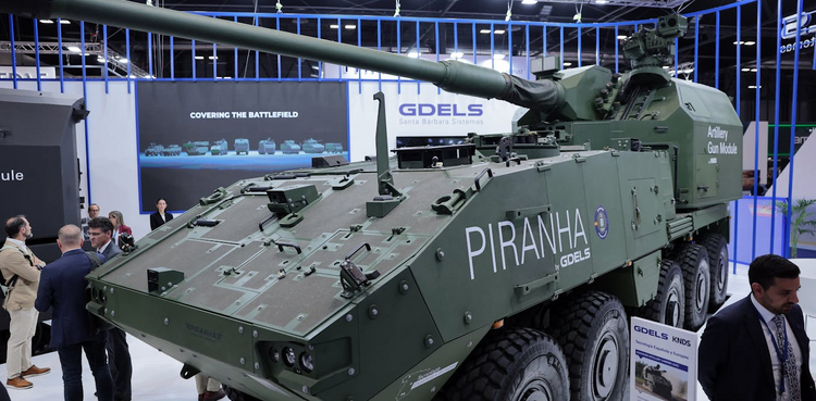 Μεγάλες ευρωπαϊκές αμυντικές εταιρείες μπορούν να συνεργαστούν με μικρότερες εταιρείες, συμπεριλαμβανομένων νεοσύστατων επιχειρήσεων, για να συμβαδίσουν με τις τεχνολογικές αλλαγές. Εδώ, ένα πυροβολικό που κατασκευάζεται από την ισπανική εταιρεία GDELS εκτίθεται στη Διεθνή Έκθεση Άμυνας και Ασφάλειας στη Μαδρίτη στις 12 Μαΐου 2025. Thomas Coex/AFP
