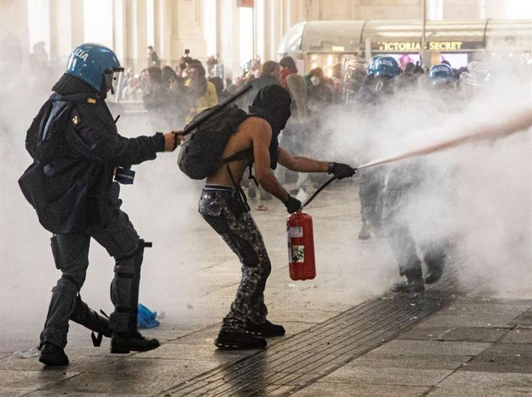 Στην Μπολόνια, η αστυνομία χρησιμοποίησε αύρες με κανόνια νερού για να διαλύσει πλήθος διαδηλωτών που απέκλεισαν έναν αυτοκινητόδρομο.