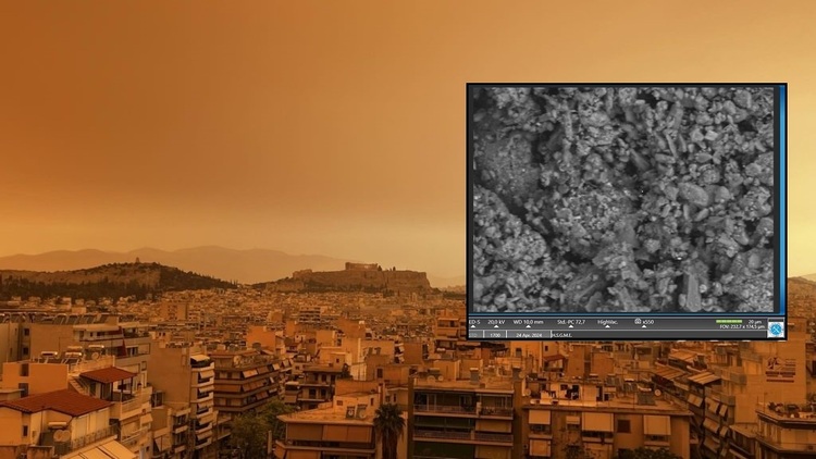 Η ΕΑΓΜΕ συνέλεξε και ανέλυσε με τη χρήση του νέου ηλεκτρονικού μικροσκοπίου σάρωσης JSM-IT500L τελευταίας τεχνολογίας, το οποίο έχει τη δυνατότητα μεγέθυνσης έως 300.000 φορές, δείγμα της αφρικανικής σκόνης που έχει καλύψει την Αττική τις τελευταίες ημέρες.