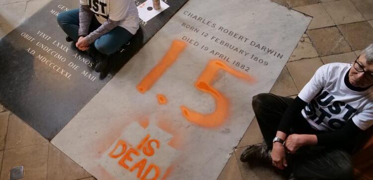 Κλιματικές ακτιβίστριες της οργάνωσης Just Stop Oil πραγματοποιήσαν δράση σήμερα με μπογιά στον τάφο του βρετανού φυσιοδίφη Κάρολου Δαρβίνου στο Αββαείο του Ουέστμινστερ στο Λονδίνο.